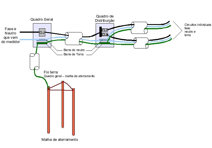 O terra  é um condutor construído através de uma malha de haste metálica e que , em situações normais, não deve possuir corrente elétrica circulante.